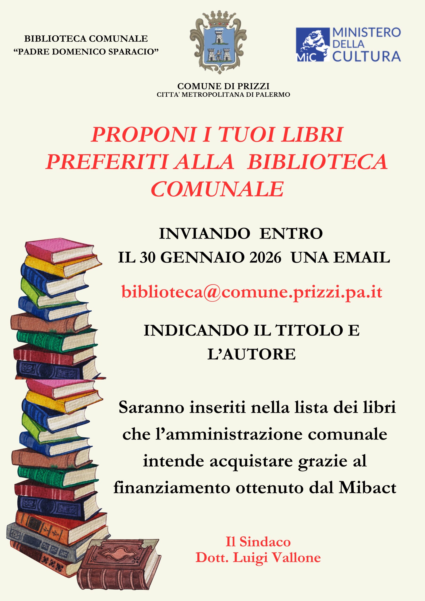 PROPONI I TUOI LIBRI PREFERITI ALLA BIBLIOTECA COMUNALE